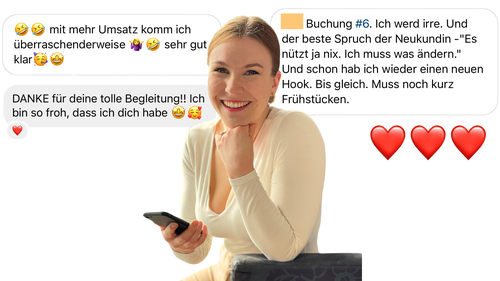 Wir schreiben selbst die Regeln und suchen kreative Wege, diese Dinge miteinander zu vereinen und gleichzeitig erfolgreich zu sein. Meine Kundinnen verdoppeln ihre Jahresumsätze, bleiben konstant 5-stellig und lernen, wie die Umsetzung für sie ganz einfach von der Hand geht. Mein Ziel ist es, Frauen Klarheit über ihren Weg zu geben und dafür zu sorgen, dass sie ihr Leben und ihr Business genießen!