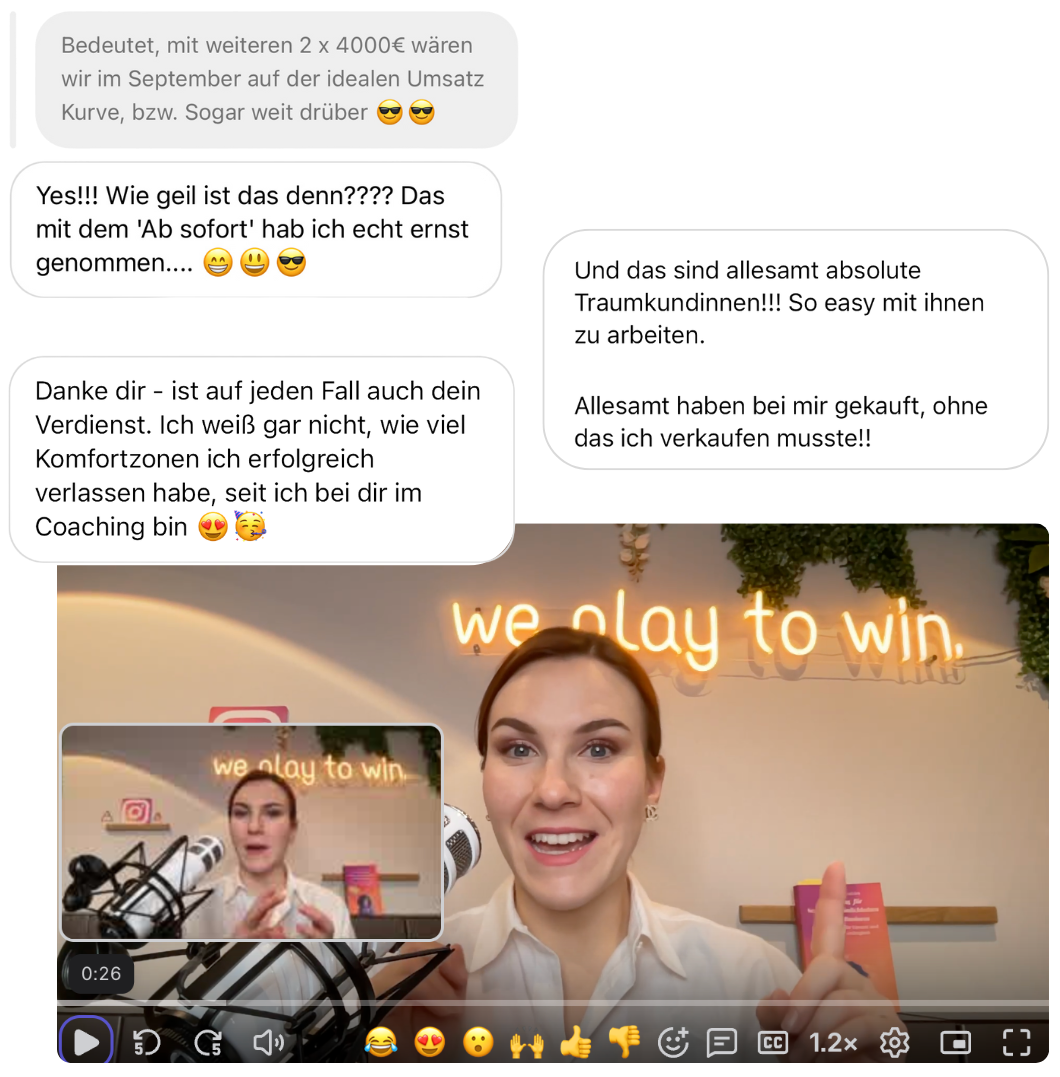Ich habe nach 11 Jahren Beziehung eine sehr emotionale Trennung durchgemacht. Gas geben im Business? In diesem Jahr nicht die erste Prio. Und trotzdem lief alles. Alles hat funktioniert, als ich es nicht konnte. Ich hatte Zeit für mich. UND genug Cashflow. Und der Erfolg meiner Kunden hat mich mega stolz gemacht!